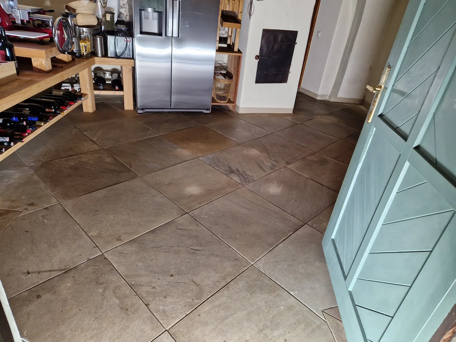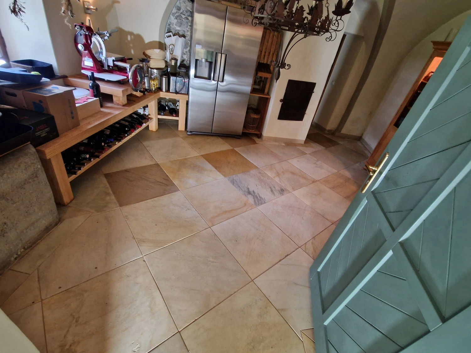 Tiefengrundreinigung von Naturstein (Sandstein) und abschließender Tiefenimprägnierung